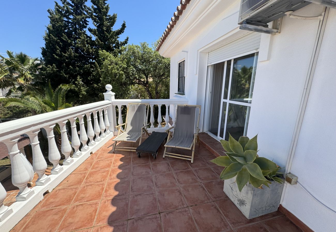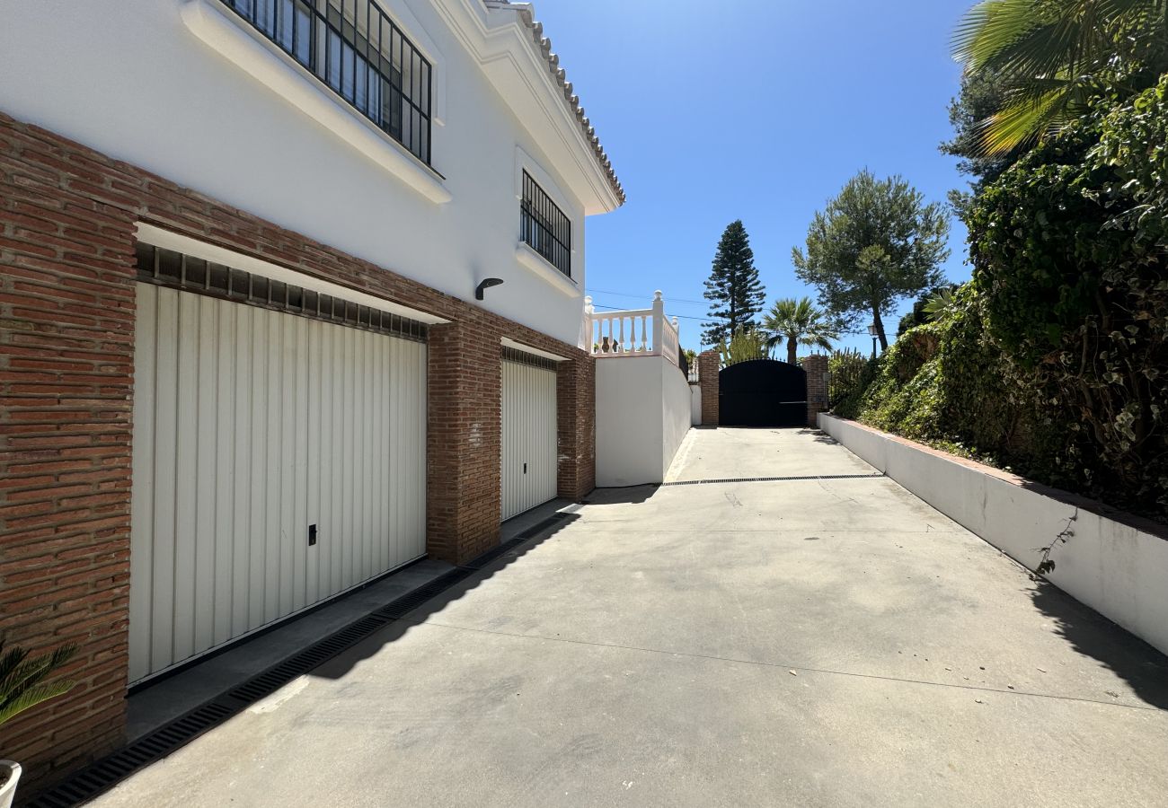 Charming Villa located in Marbella East, only 10 minutes drive from the city centre, refurbished with good qualities. Built on three floors, it enjoys a flat and sunny plot, garden with swimming pool and chill out area. It has a spacious and bright living-dining room with fireplace and an open and fully equipped kitchen, with a large covered terrace from where you have direct access to the swimming pool and the garden. The terrace has a barbecue and dining area from where you can enjoy wonderful views of the bay of Marbella. It has five very nice bedrooms en suite, five bathrooms and a guest toilet. In addition, this villa has a basement flat but with natural light, with independent entrance, fully equipped, with kitchen, bathroom, living room and a bedroom. The property has a gymnasium and a sauna. Private covered garage for two cars. It has several covered and uncovered terraces as well as a porch area with garden. It is a property that exudes tranquillity and harmony.