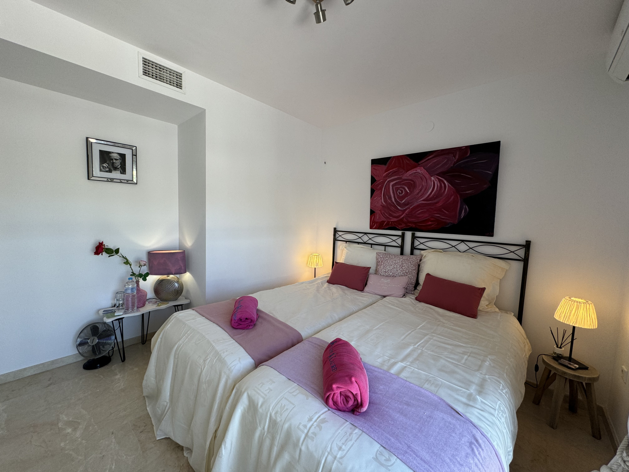 Also ideal for golfing holidays as there are many golf clubs nearby – Marbella Golf Club, Santa Clara, Rio Real and Santa Maria Golf Club are all within 3 to 5 kilometres in the car. The exclusive Vincci Hotel and Spa is 2 minutes drive away, located right at the beach, where you can relax in the spa or chill at the beach club.